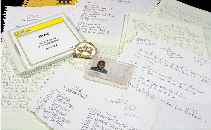 medallion, handwritten lyrics for songs from All Eyez On Me and The Don Killuminati: The 7 Day Theory, some of the clothing he wore in music videos, and more.